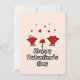 Cute red hearts couple with red rose for Valentine Day on light pink background