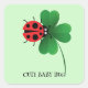 Cute red ladybug on Lucky leaf Kids Square Sticker