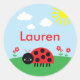 These stickers feature a cute, smiling ladybug on a green hill surrounded by pink and red flowers. These stickers are perfect for labelling your child's belongings, or they can be used as thank you's on party favours, or even gift labels (ex: a gift from: Lauren).