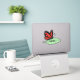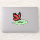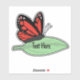 A colorful and cute sticker featuring a red monarch butterfly sitting on a leaf. A great way to label your personal items.