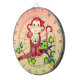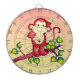 Here is a fun dartboard featuring a red monkey with a long curling tail on a tree branch surrounded by green leaves.