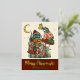Cute Red Mushroom Frog and Toad Merry Christmas F Foil Holiday Postcard