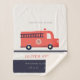 Cute Red Navy Fire Truck Monogram Birth Stat Sherpa Blanket