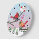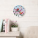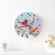 Cute Red Northern Cardinals Love Winter Landscape Large Clock