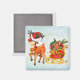 Cute red -nosed reindeer pulling sleigh Christmas Magnet