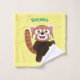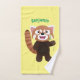 This happy, cute red panda is enjoying a bamboo snack. Drawn in adorable cuddly cartoon style.