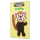 This happy, cute red panda is enjoying a bamboo snack. Drawn in adorable cuddly cartoon style.