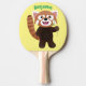 This happy, cute red panda is enjoying a bamboo snack. Drawn in adorable cuddly cartoon style.