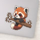 This sticker features an adorable red panda, perched on a tree branch with its eyes open and alert. The furry mammal is depicted with a curious expression, as if observing its surroundings with interest. The red panda's reddish-brown fur is rendered with intricate details, conveying its fluffy texture and the distinct white markings on its face and tail. The tree branch is also illustrated with a realistic texture, creating a sense of depth and dimension. This sticker is perfect for nature lovers and animal enthusiasts who appreciate the beauty of wildlife, and it's sure to add a touch of cuteness and charm to any surface it's applied to.