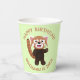This happy, cute red panda is enjoying a bamboo snack. Drawn in adorable cuddly cartoon style.