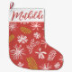 Cute Red & pink floral calligraphy script Christmas Stocking