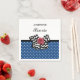 Enhance your girly party style with these cute blue and white polka dot pattern paper napkins with a trendy black and white chevron bow and a chic red ribbon rose. This blue and red retro meets modern design can be personalised by adding the name of your teen party girl. Flat printed image, NOT actual rosette ribbon and bow.