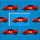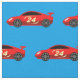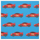 Cute red racecar pattern fabric kid's textile. Cute auto racing theme design print for baby shower, DIY pojects and kid's accessories. Custom color background behind race car illustration. Make your own children's clothes, decor and decorations. Sporty vehicle icon for boys and girls. Blue or custom color background.