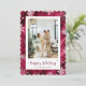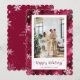 Beautiful red photo holiday card featuring snowflakes, stars and snowfall on a faux red foil background. Easily personalise this photo holiday card with your photo and text.