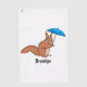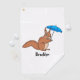 Cute red squirrel with umbrella cartoon golf towel