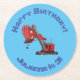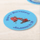 Cute red steam shovel digger cartoon illustration round paper coaster
