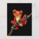 This adorable design features a small red tree frog holding on to a thin branch. The tiny frog is looking forward with it's head tilted slightly to one side giving it a curious look. All four of the frog's feet are wrapped around a thin branch that moves from the bottom of the design up to the right side of the pattern. This unique design is a cute example of this wonderful little rain forest creature.