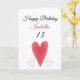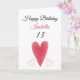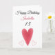 Cute Red Watercolor Long Heart 13th Birthday Card