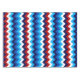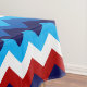 A 52” x 70” tablecloth featuring a colourful, cute pattern design of red, white, and blue chevrons.