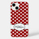 Personalise retro trendy girly iPhone case with your initial and name. Adorable Cool retro pattern with White dots and dark red background.