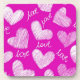 Cute Red White Scribbled Hearts with Love Script Coaster