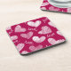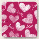 Cute Red White Scribbled Hearts with Love Script Coaster