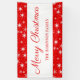 This Merry Christmas design has a red and white snowflake pattern, with red font, and family name text for you to change.