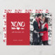 Fun and festive, the perfect way to send love to friends and family this Valentine's Day. This family photo car features a red XOXO with Cupid's arrow piercing a heart with black typography "Happy Valentine's Day" greet that can be customised as well as black text "Jacob and Marissa" that can be changed to fit everyone in the whole family and a family photo template on the front side. The back features the XOXO arrow pattern over a red background.