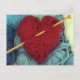 Beautiful photograph of a heart made of burgundy colored wool on a background of assorted blues. I pierced a knitting needle through it Like an arrow through your heart! A cute and quirky take on love and romance!