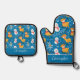 Cute Reindeer and Snowman Blue Oven Mitt & Pot Holder Set