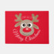 Cute Reindeer Cartoon Christmas Red Script Doormat