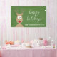 Cute Reindeer Cartoon with Family Greeting green Banner