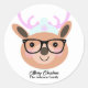 Cute Reindeer Christmas Party Scarf Hat Glasses Classic Round Sticker