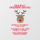 Cute reindeer Christmas shop opening hours custom Window Cling (not a sticker). Custom decor for the Holiday season. Static non adhesive Window Cling for doors and windows. Personalised decorations for business, shop, museum, business, restaurant, library, bar, coffee shop, cafe, office, workplace, school, store, company, hospital and other places. Custom x-mas decor for informing customers, clients, visitors, guests etc. Face outwards or inwards, printed on one side. Add your own time table text. Rudolf the red nose deer cartoon design with your Christmas day and New Years info, open and closed days etc.