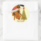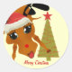 Cute Anime Reindeer with Whimsical Jolly Santa Hat and Mid Century Modern MCM Olive Green and Rustic Red Merry Christmas Tree with Star on top Sticker.