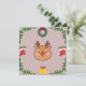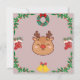 Bring holiday joy with this charming square card featuring a sweet reindeer face with antlers and a red nose, surrounded by festive decorations including a green wreath, red stockings, and golden bells. The soft pink background adds a playful and cozy touch—perfect for cheerful greetings and seasonal smiles.