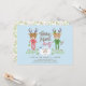 FRONT: Hand-drawn rustic design. The boy reindeer is wearing red and white striped one-piece pyjamas and holding an ornament. The girl reindeer is wearing green and white one-piece pyjamas, holding a bunny doll and wearing holly in her antlers. They're joined by a little bird friend wearing a Christmas hat. The decorative text "Holiday Pajama Party" is already included as part of the design, but that layer can be deleted if you wish to add your own text. Background colour can be changed. "Personalise this template" to add your own party details. BACK: A matching holly pattern.