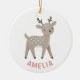 Cute Reindeer Kid`s Name Christmas Ceramic Ornament. Cute deer with white snowflakes. The ornament has a name template - personalize it with your name.