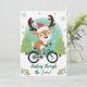Add some festive fun to your holiday greetings with this cute green bicycle Christmas card! Featuring a playful reindeer riding a green bike, this design is perfect for kids, families, and anyone who loves a whimsical take on the season. The “Dashing Through the Snow” message and snowy background make this card an ideal way to spread holiday cheer. Personalise the inside with your own message for an extra special touch!