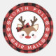 Cute Reindeer Plaid Bow North Pole Air Mail Classic Round Sticker
