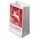 Show your appreciation to your family or friends this year with this red reindeer personalised gift bag. Perfect to fill with a special gift or gifts at Christmas time. Festive Christmas holidays reindeer prancing over Christmas gifts in the snow design. Customise / personalise these Christmas gift bags with your own name and a seasonal message or thanks. Currently reads Happy holidays from the Dickson family. Unique art and design by Sarah Trett.
