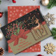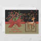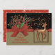 Cute Reindeer Red Bow Black & Gold Holiday Card