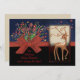 Cute Reindeer Red Bow Blue& Black Holiday Card