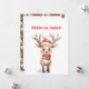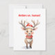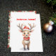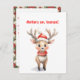 This Christmas card shows a cute cartoon of Rudolph the reindeer. He's smiling big, so he looks friendly and happy. The back of the card has a Christmas-themed border. There's a funny Christmas message from Rudolph on the card, designed to make you smile. It's a nice card to send to share Christmas joy. The artist made sure Rudolph looks as cute and friendly as possible, and all the details make it a great Christmas card.