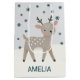 Cute Reindeer Snowflakes Drawing Christmas Name Medium Gift Bag. A cosy, Boho-inspired Christmas gift bag featuring cute reindeer on a snowy hill. Soft earthy tones such as terracotta, cream, and green. Delicate snowflakes are scattered across the bag, adding a touch of winter magic. The overall aesthetic exudes a warm, rustic, and modern Bohemian feel, perfect for a stylish yet festive holiday look.