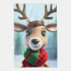 Winter scene with a cute Reindeer wearing a scarf.