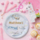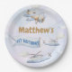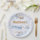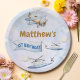 Cute Retro Blue Aeroplane 1st Birthday Paper Plate