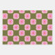 Cute Retro Boho Chequerboard Flower Green Pink Wrapping Paper Sheet