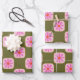 Cute Retro Boho Chequerboard Flower Green Pink Wrapping Paper Sheets