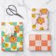 Cute Retro Chequerboard patterns with flowers Wrapping Paper Sheet